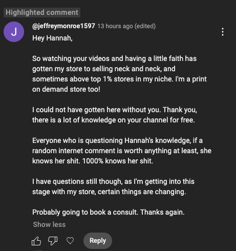 "After working with Hannah, our sales volume outperformed my Christmas rush!"